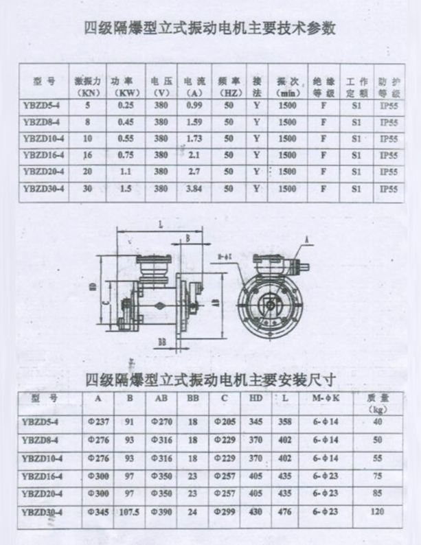 YBZD系列戶外隔爆型振動三相異步電動機(jī)(簡稱防爆型振動電機(jī)),其工作原理和通用型振動電機(jī)類似,是利用兩端的偏心塊高速旋轉(zhuǎn)產(chǎn)生振動力作為振動源。該系列防爆振動電機(jī)具有設(shè)計(jì)合理、結(jié)構(gòu)緊湊、激振效率高、節(jié)能、壽命長、運(yùn)行可靠、安裝調(diào)試方便等優(yōu)點(diǎn)??勺鳛檎駝恿隙贰⒄駝雍Y、圓振篩、振動給料機(jī)、振動輸送機(jī)的要求防爆環(huán)境工作振動源。其防爆性能符合GB3836.2-2000《爆炸性氣體環(huán)境用電氣設(shè)備——隔爆型”d"》。防爆標(biāo)志為ExdⅡBT4,使用于Ⅱ類A、B級T1~T4組可燃性氣體或蒸汽與空氣形成的爆炸性混合物的場所。