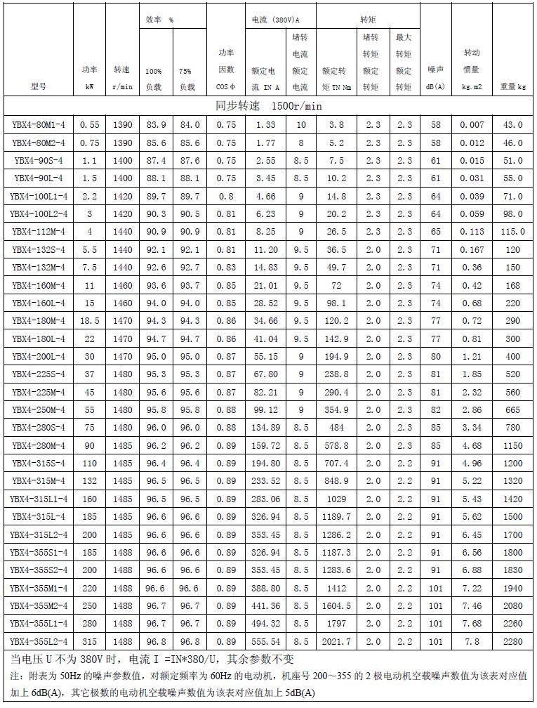 YBX4 系列電動機為我公司自主研發(fā)推出的全封閉、自扇冷、鼠籠式高效率隔爆型三相異步電動機。效率指標符合 GB18613-2012《中小型三相異步電動機能效限定值及能效等級》中的能效等級 1 級,且具有性能優(yōu)良,使用安全可靠,振動、噪聲比同類產(chǎn)品低的特點,符合環(huán)保要求。